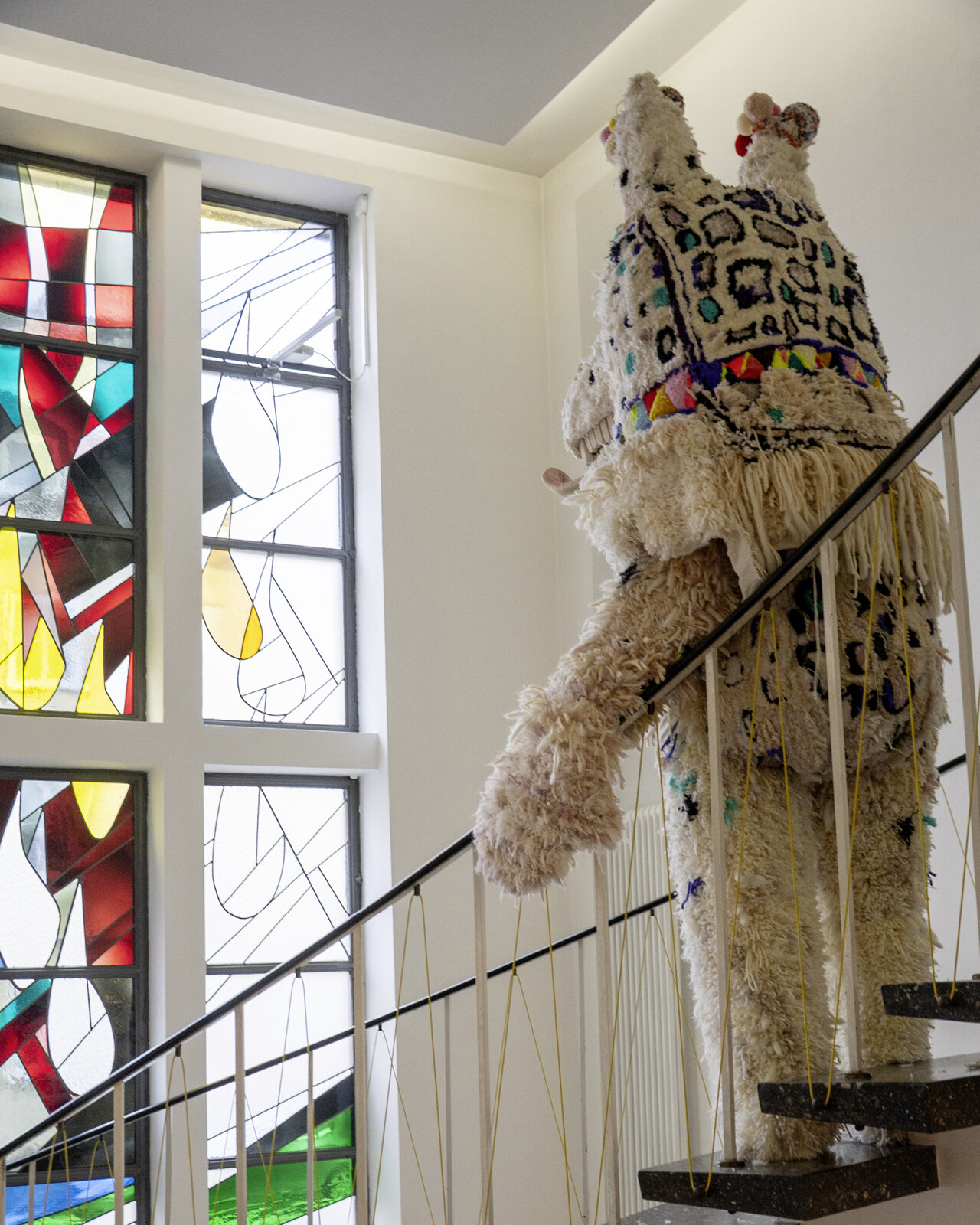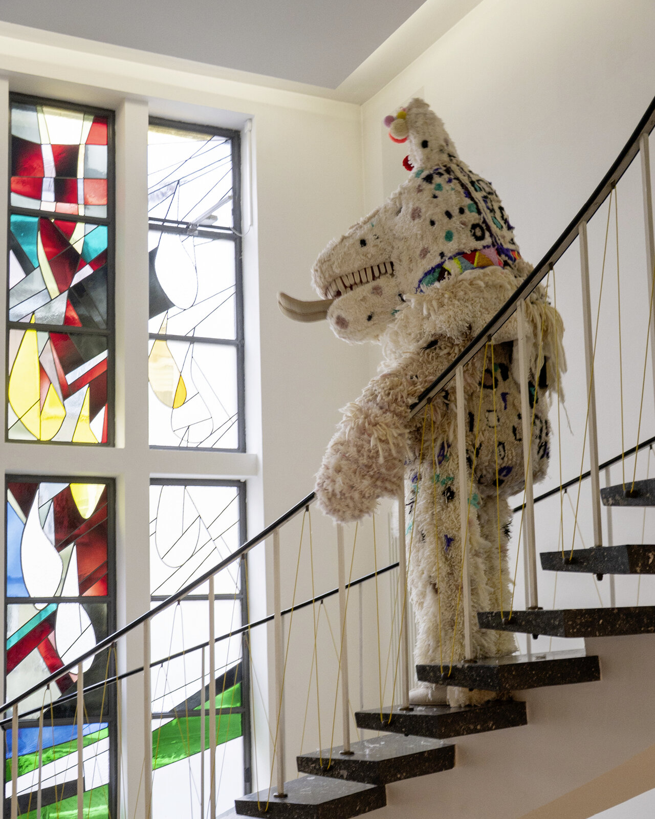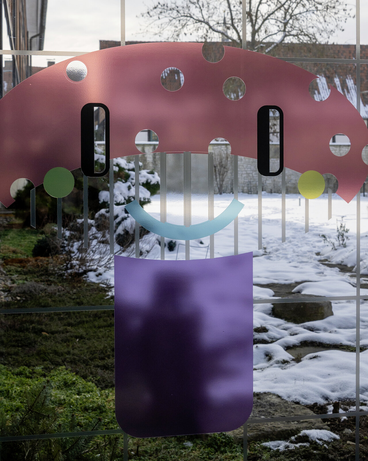 Das Fensterbild im Glasgang zwischen Altbau und Neubau des LÜCHTENHOF hat Franca Neuburg entwickelt im Zusammenspiel mit den bunten Kirchenfenstern im Foyer und in der Seminarkirche.