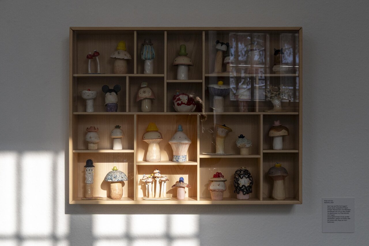Die Ausstellung umfasst Arbeiten der Künstlerin Franca Neuburg aus drei Jahrzehnten – darunter großformatige Masken, Keramiken, Zeichnungen und Drucke. Außerdem spielerische Objekte wie einen interaktiven Automaten sowie Kurzfilme über das mehrdimensionale Schaffen der Künstlerin.