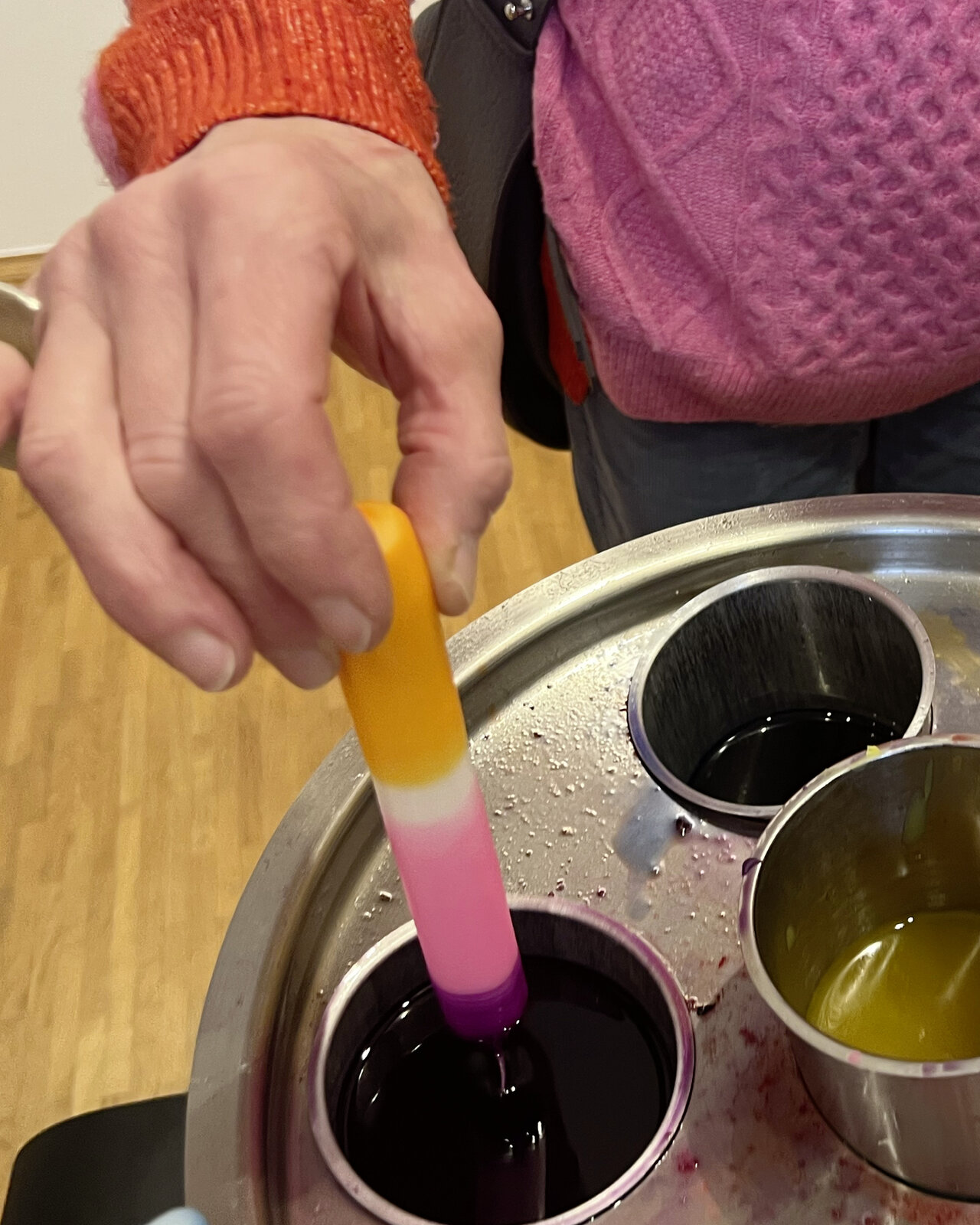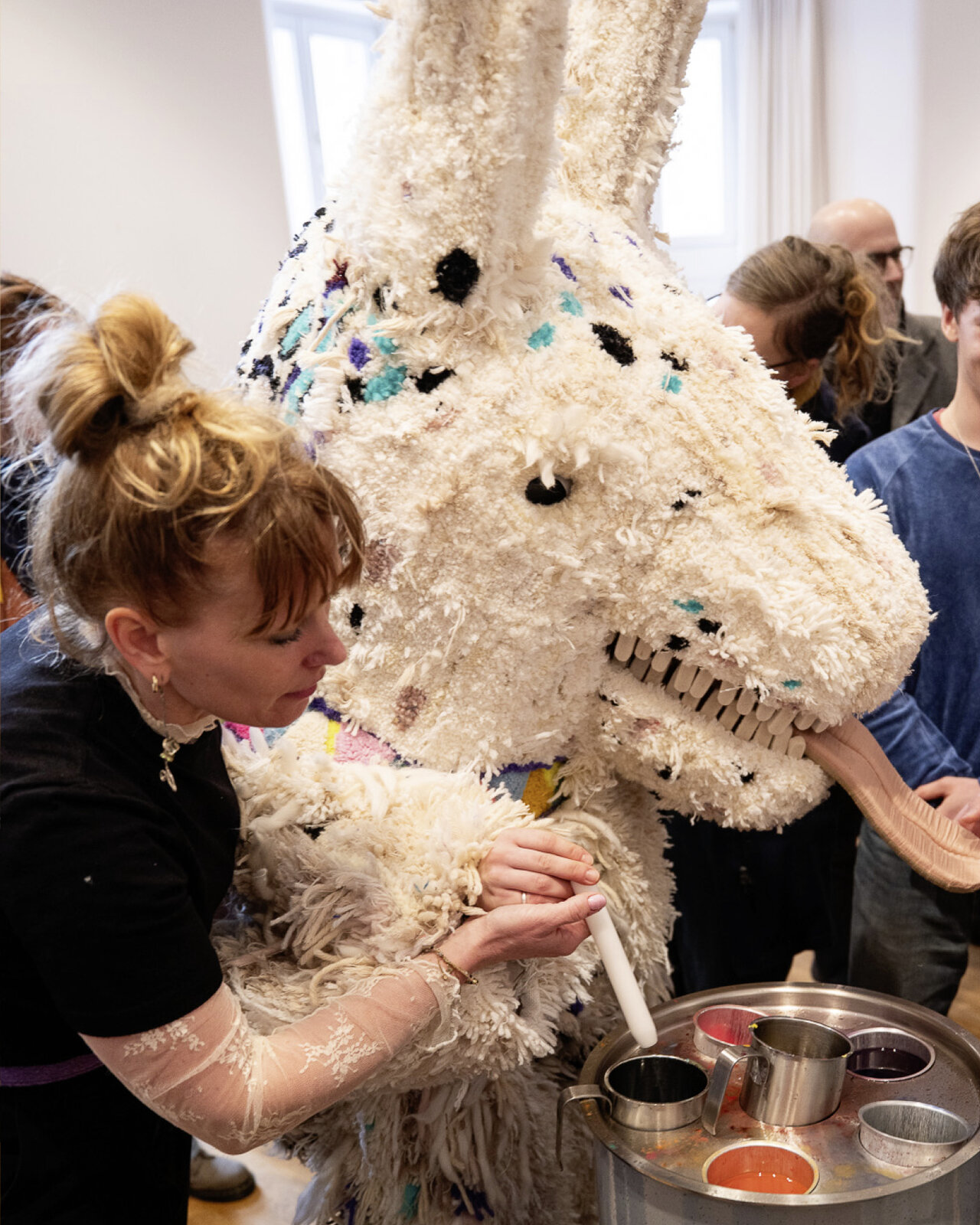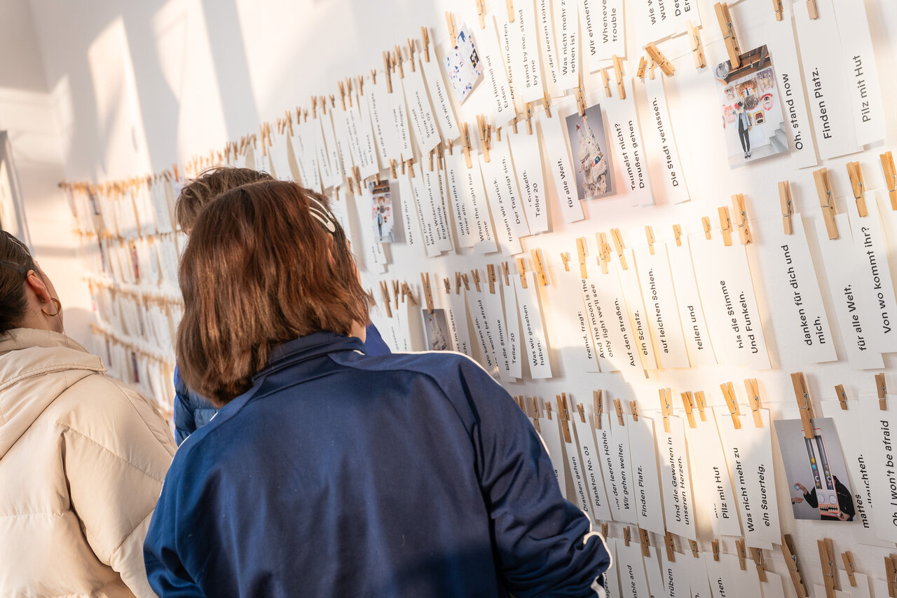 Gemeinsam wandelten wir entlang der rund 100 Arbeiten von @francaneuburg, färbten Lüchten in der Kerzenwerkstatt, pflückten Worte von den Wänden, drehten am Zettel-Automaten und zogen an Hampeltieren. Wir erlebten wie aus Regen, Hagel und Farbe ein Buch entstand. Wir sahen, wie sich vor unseren Augen in blauer der Kreis öffnete und erweiterten anschließend mit Dr. Christian Hennecke das Lücht in unserer Mitte um unzählige weitere Kerzen. Wir lasen mit Direktor Dirk Brall zwischen den Zeilen der alten Emmaus-Geschichte und entdeckten darin „Warme Quellen“. Wir hörten eine bewegende Laudatio von Autor Dr. Christian Sauer. Und Franca Neuburg im Gespräch mit Direktorin Stephanie Brall über Spielräume, Vulnerabilität und das Leben selbst.