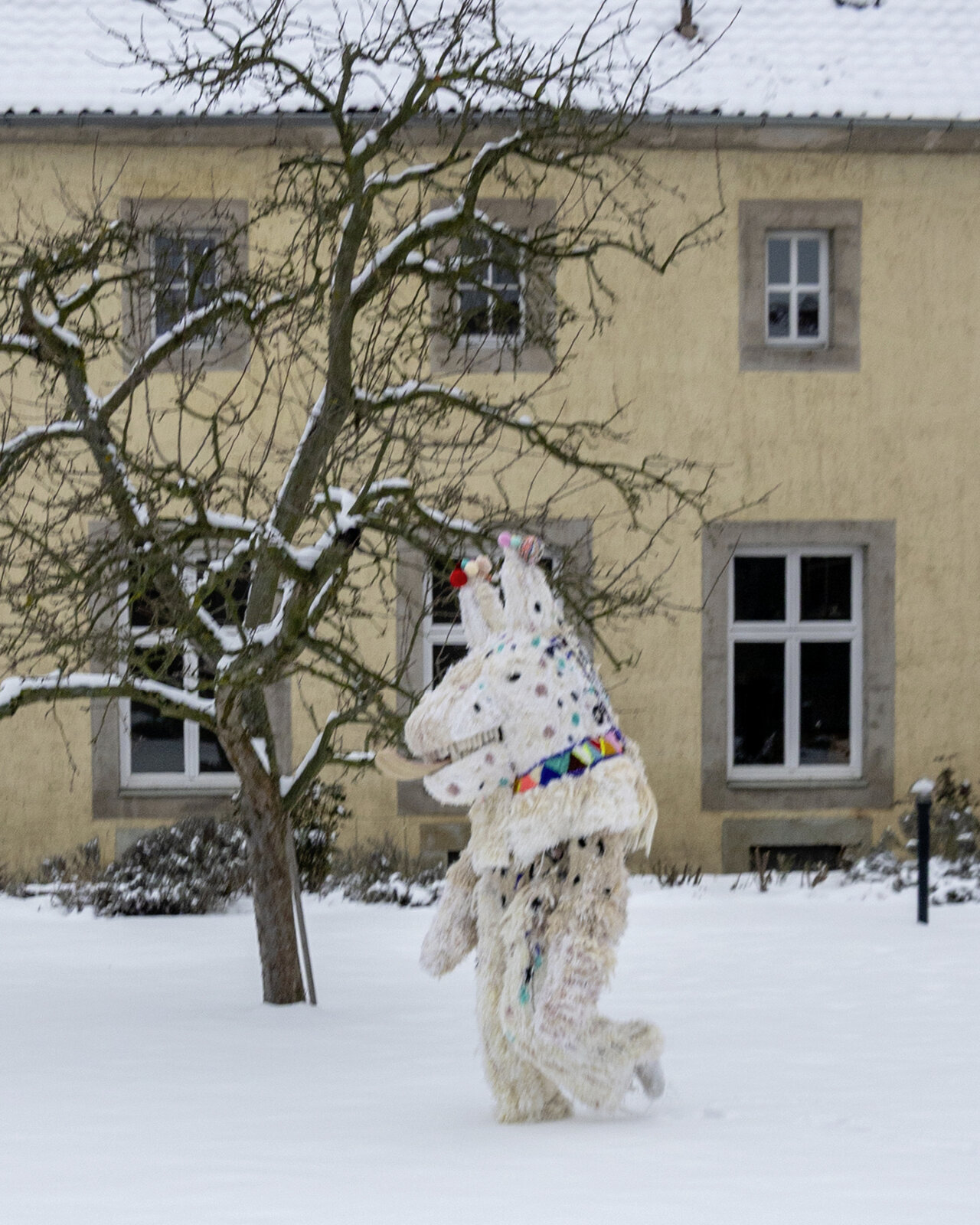 Was haben wir dich geliebt, "Maske No. 10". Als Franca Neuburg mit dir im LÜCHTENHOF auftauchte. Als du dich zu uns geselltest, mitten im Schnee, und uns in den Arm nahmst. Und dann vor unseren Augen das Tanzen begannst. Wurdest uns zum Gleichnis. Für uns. Als Teil einer größeren Erzählung. Der von Emmaus zum Beispiel. „Stand by me“, sangen wir. Und winkten dir anschließend hinterher. Hast Bilder von dir hier gelassen an den Wänden. Funkeln im Lücht. Und Karten. Die schicken wir in die ganze Welt hinaus. Und du? Bist weitergezogen. Mehr Menschen umarmen. Gut so.