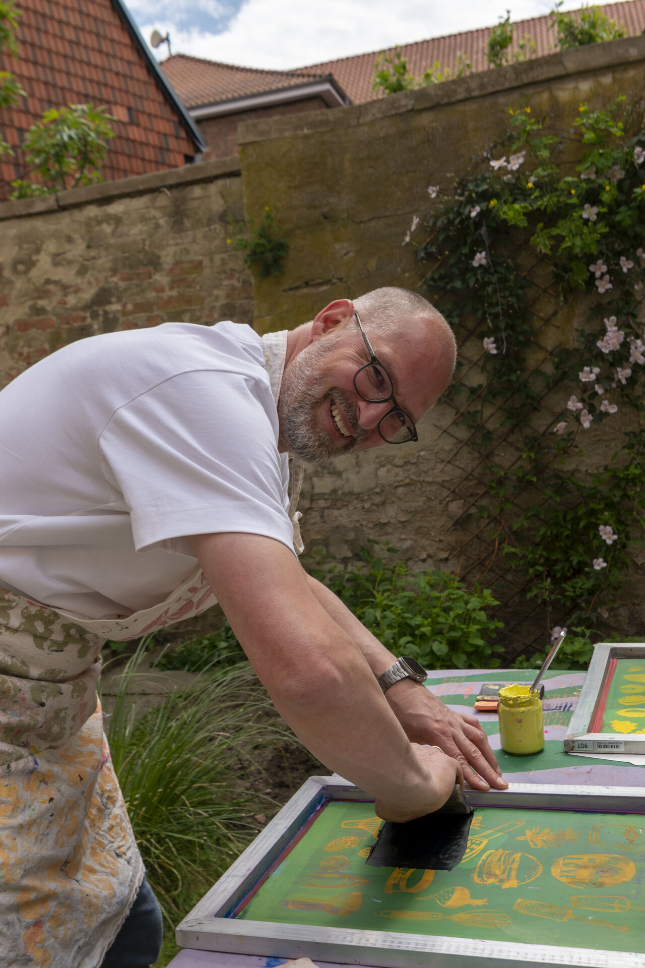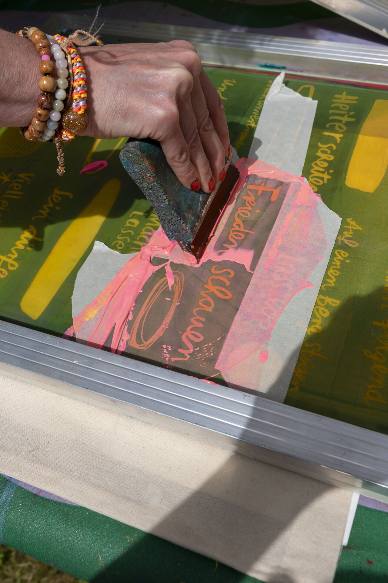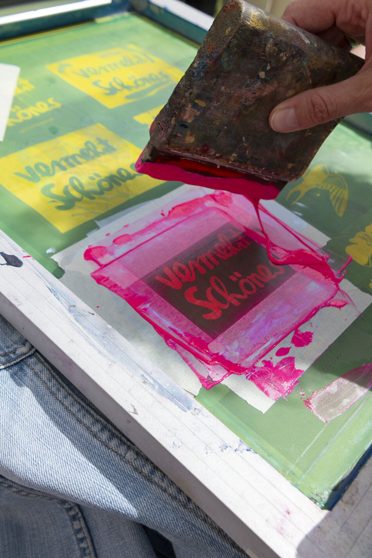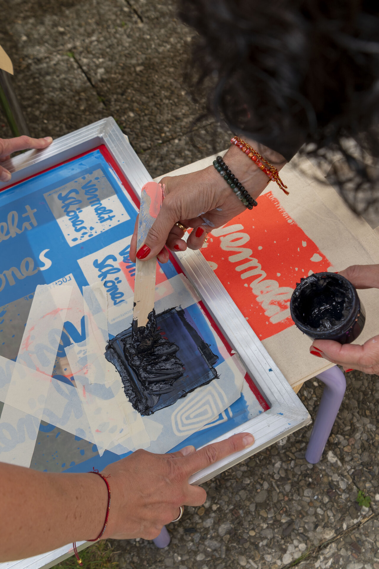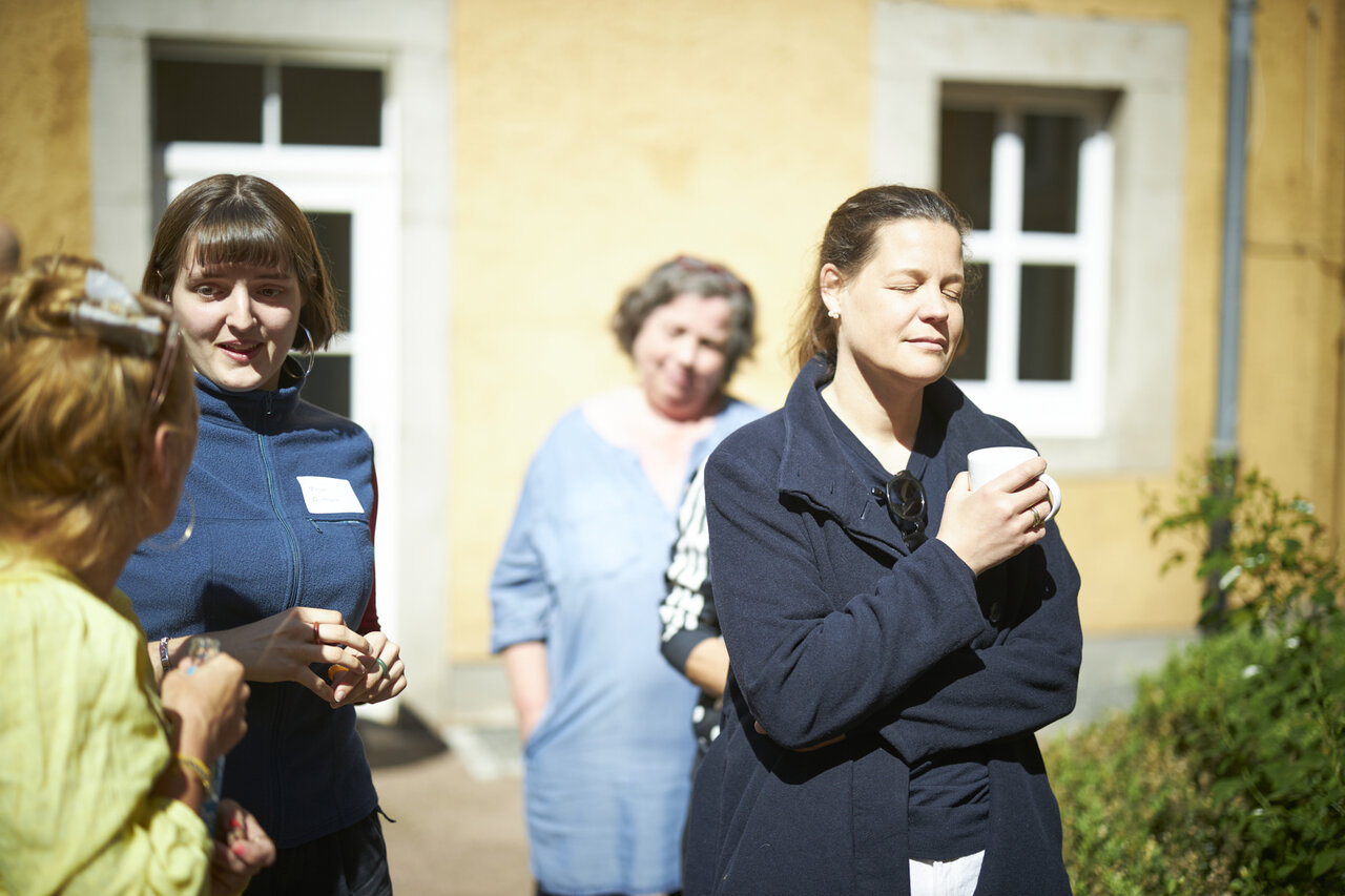In Werkstattzeiten das Gehörte vertiefen und Schönes vermehren. Beim Siebdruck mit Werkstattleiterin Ann-Kathrin Blohmer und bei der Polaroidphotographie mit Eva Jung. Oder einfach durch die Gärten streifen, in der Bibliothek stöbern und die Ausstellung von Donata Wenders sichten.