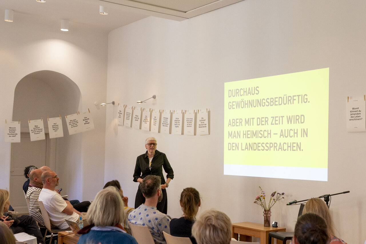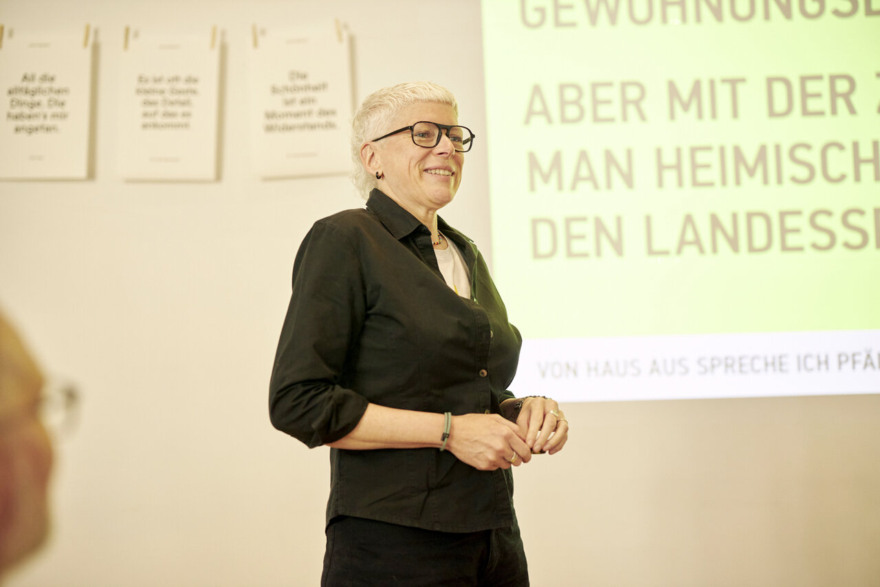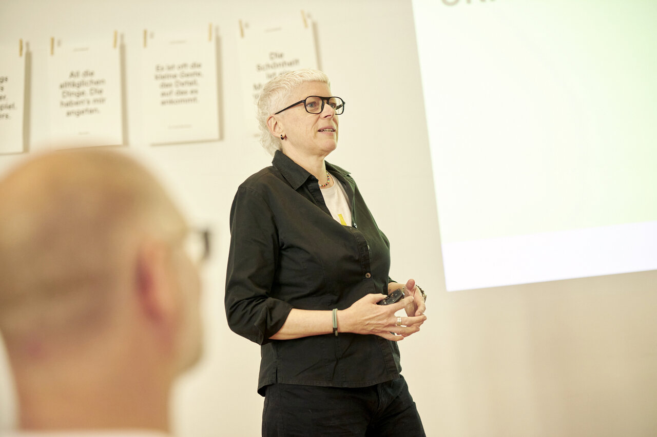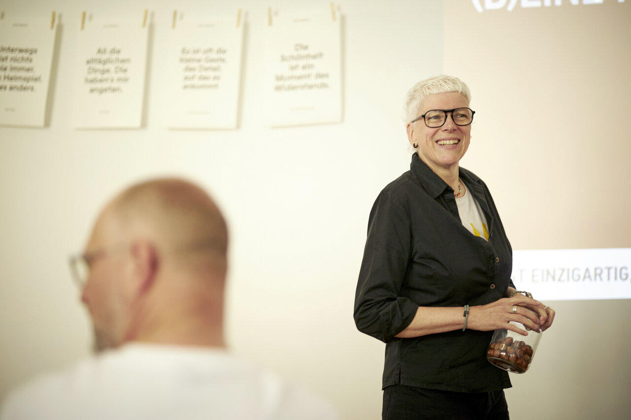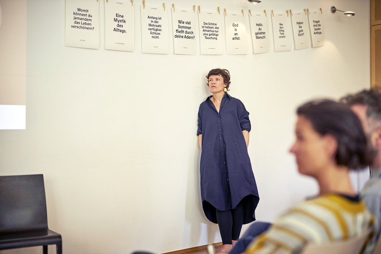 Sie ist Gründerin und geschäftsführende Gesellschafterin von gobasil und bekannt durch alle möglichen Publikationen, Karten, Bücher. Eva Jung sagt: „Hallo du geliebter Mensch.“ Und Eva glaubt: „God is an artist.“ Und Eva fragt. Viel. Zum Beispiel „Woran denken Sie gerade?“ Und: „Auf welches Zeichen wartest du?“ Und: „Haben Sie gute Sicht?“ Und: „Wer bestimmt überhaupt, was sehenswürdig ist?“ Und: „Womit könntest du jemandem das Leben verschönern?“ Und: „Bleiben Sie fragend. Das hält geschmeidig!“ Denn: „Fragen sind die besten Anfänge.“ Was war das ein Vergnügen: Neu sehen lernen und Fragen wagen mit der fabelhaften Eva Jung!