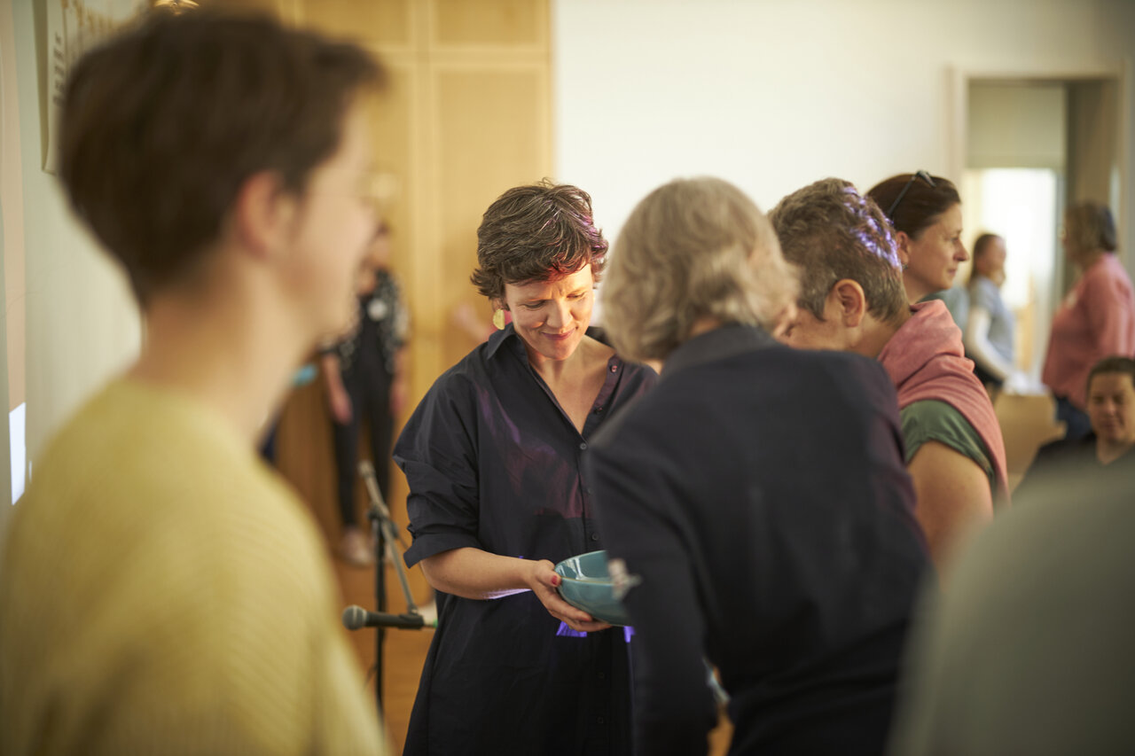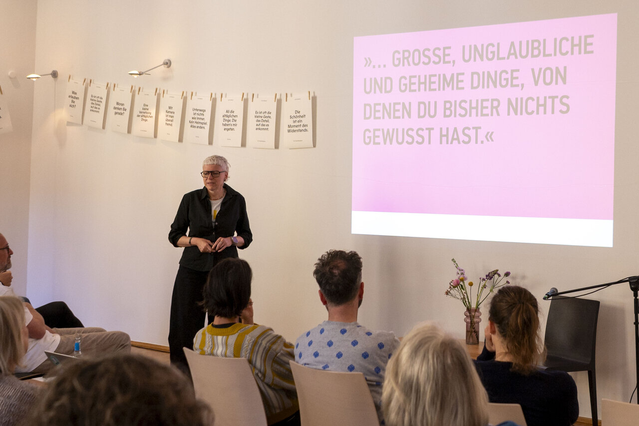 Eine Kreativ-Direktorin und ein Philosoph teilten mit uns ihren Lebenswandel und wie sie so Gesellschaft wandeln. Ein inspirierender Tag mit Eva Jung und Dr. Frank Berzbach in klösterlichem Ambiente, gerahmt von den Direktor:innen Stephanie Brall und Dirk Brall und der Kunstwerkstattleiterin Ann-Kathrin Blohmer. Ein Lüchtspiel auf der Suche nach Schönheit im Wandel. Zwischen Kreation, Intervention und Kontemplation. Mit Werkstattzeiten rund um Polaroidphotographie, Journaling, Siebdruck, Gartenbaden und Werkstattgespräch. Zwischendrin die Ausstellung von Donata Wenders genießen. Und die fabelhafte saisonale vegane Kulinarik.