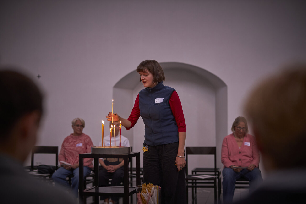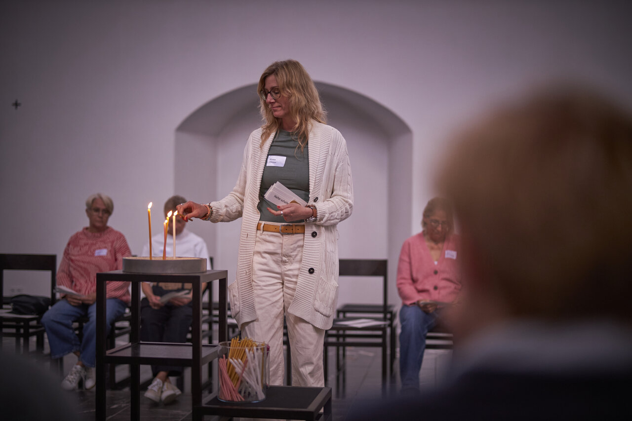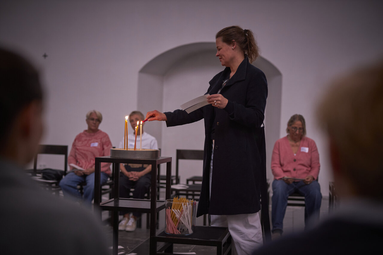 Zwischen den Zeilen des Lebens innehalten. In der Mitte des Tages Worte wieder holen und Lichter zünden. Begleitet von Dirk Bralls neu interpretierten Glückseligkeitspreisungen. Mit Worten und Musik von Stephanie Brall und Ann-Kathrin Blohmer am Akkordeon.