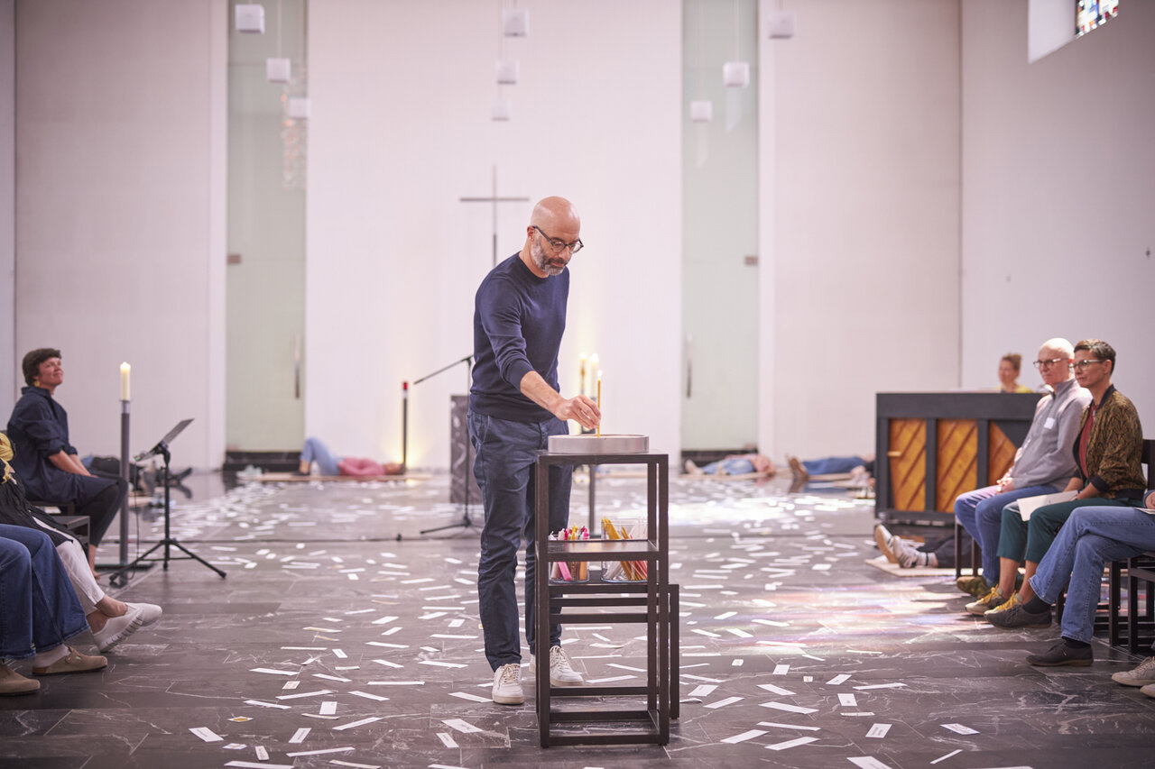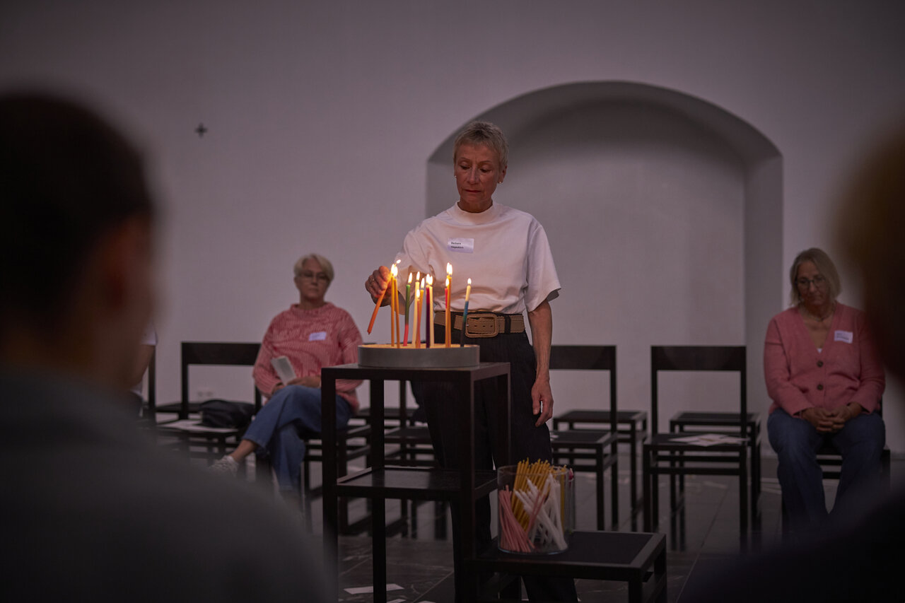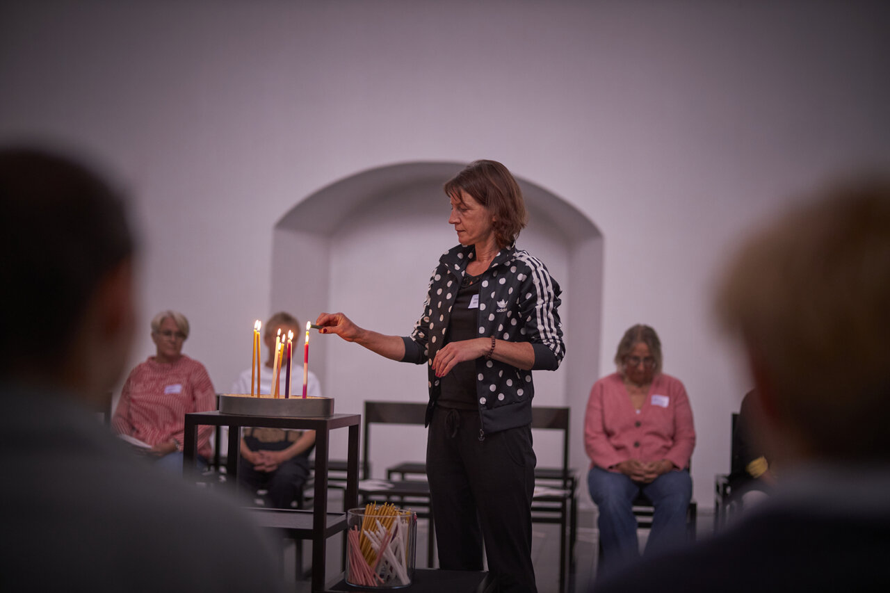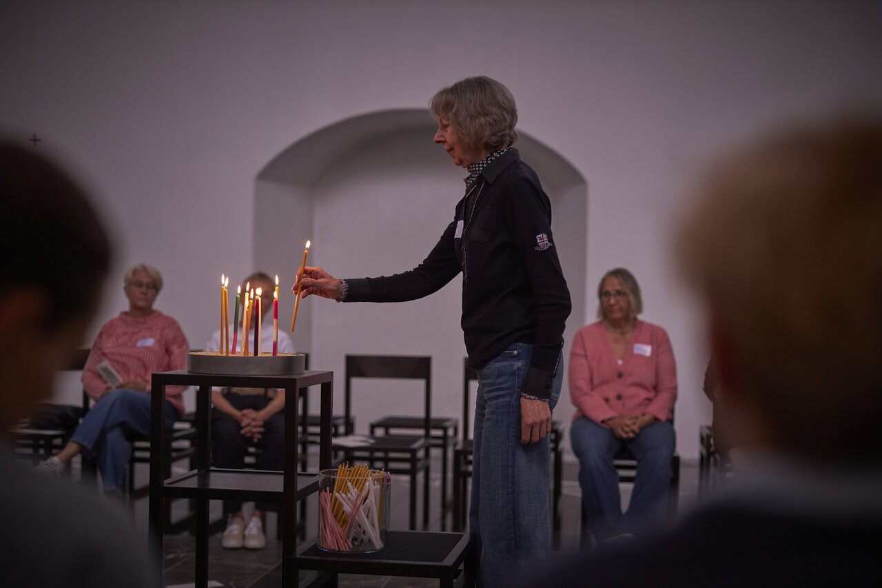 Zwischen den Zeilen des Lebens innehalten. In der Mitte des Tages Worte wieder holen und Lichter zünden. Begleitet von Dirk Bralls neu interpretierten Glückseligkeitspreisungen. Mit Worten und Musik von Stephanie Brall und Ann-Kathrin Blohmer am Akkordeon.