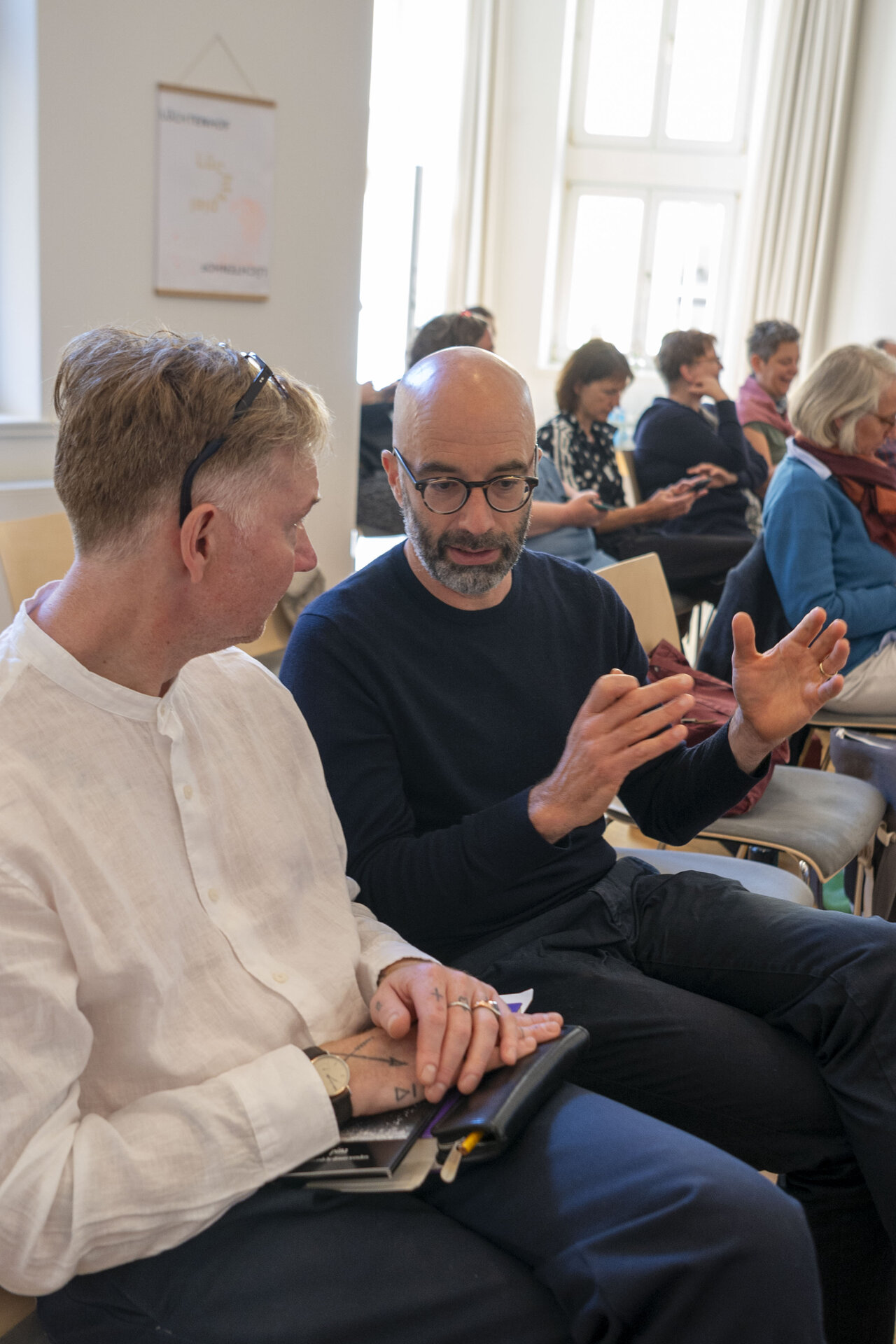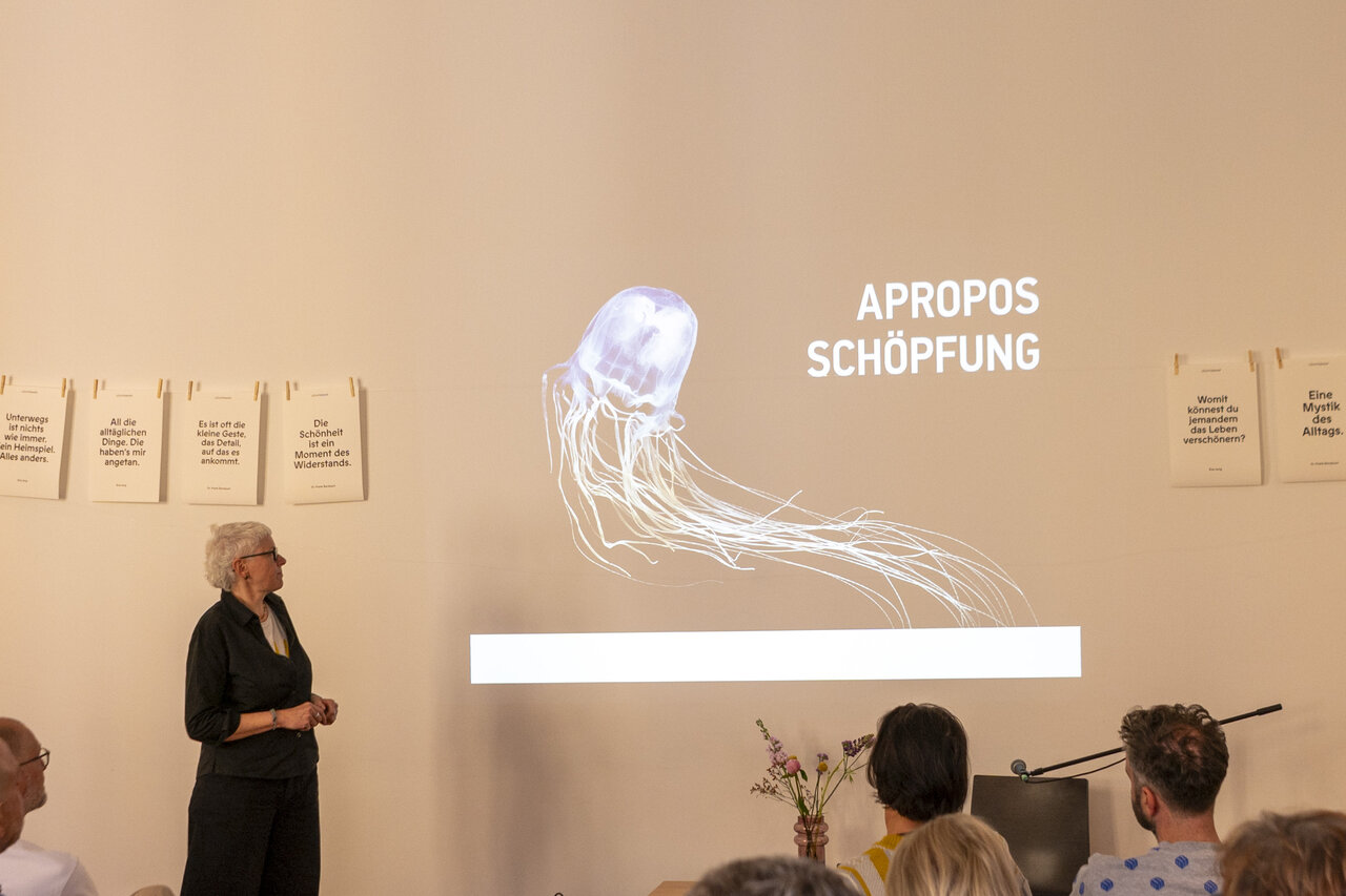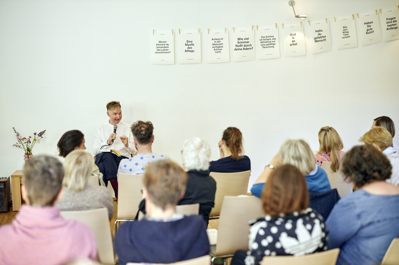 Immer wieder ging es bei den beiden um Alltägliches. In Dr. Frank Berzbachs Büchern über Lebenskunst liest man Sätze wie: „Ästhetik des Alltags.“ „Mystik des Alltags.“ „Eine kleine Vernetzung der alltäglichen Dinge.“ „Was dem Alltag Tiefe verleiht.“ Und Eva Jung wiederum sagte mal: „All die alltäglichen Dinge, die haben’s mir angetan.“ und nannte eins ihrer Bücher dann auch „Alltagstourist*in“. Was für ein Vergnügen einen Tag lang mit den beiden unterwegs gewesen zu sein und gemeinsam die Tiefe, Weite, das Heilsame und Widerständige von Schönheit auszuloten. Und aus Alltag wurde Feiertag!