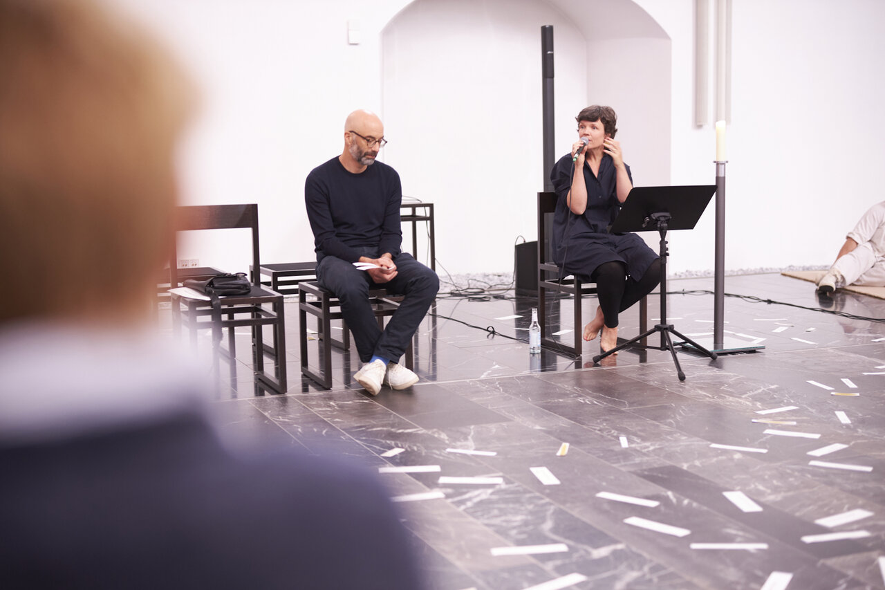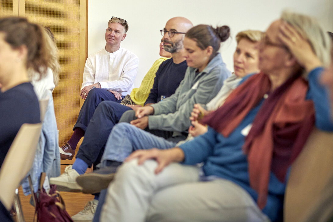Im Werkstattgespräch nimmt Stephanie Brall die Fragen der Anwesenden auf und bringt sie ins Gespräch mit Eva Jung und Dr. Frank Berzbach. Eine intensive Verdichtung zum Ende des Lüchtspiels, ein Doppelpunkt zum Ausklang.