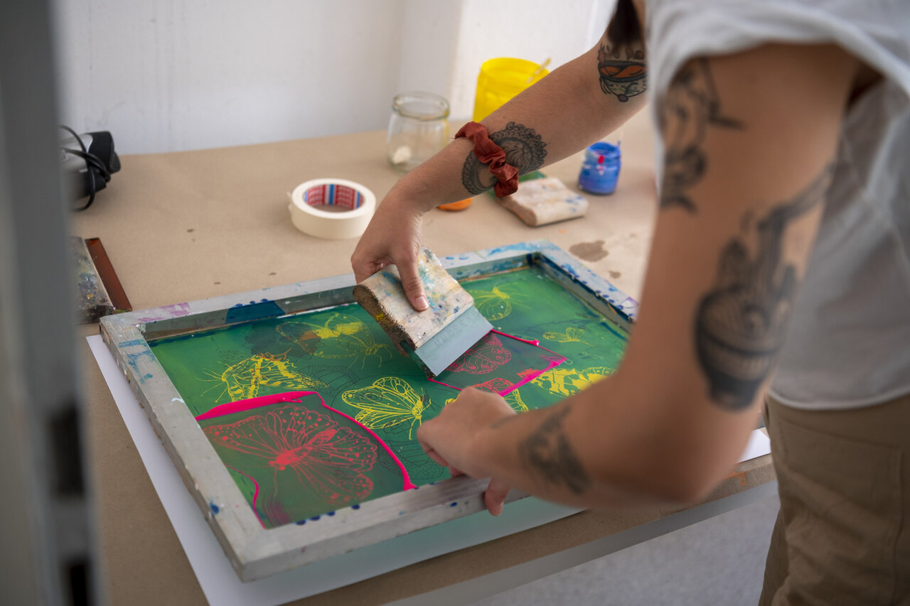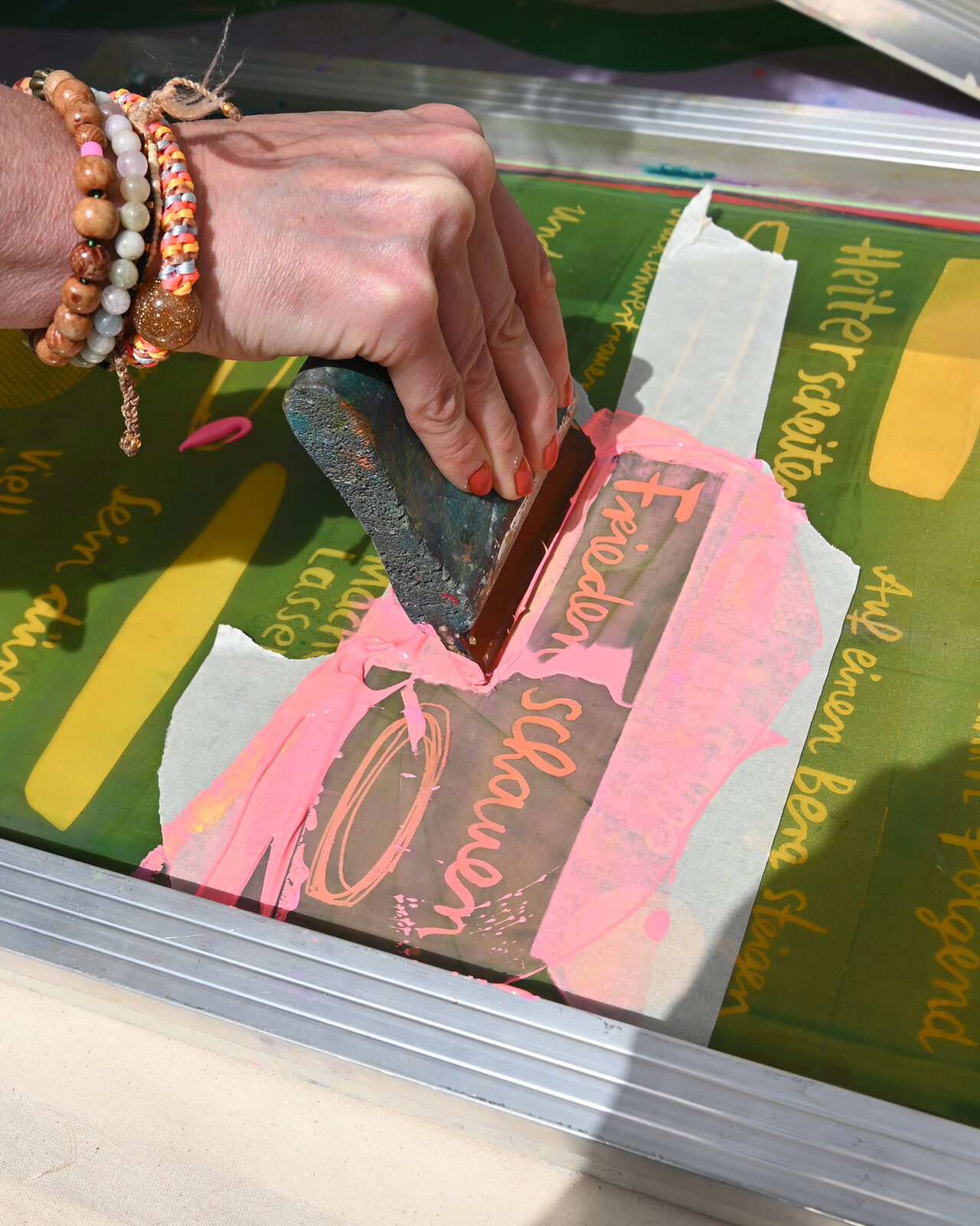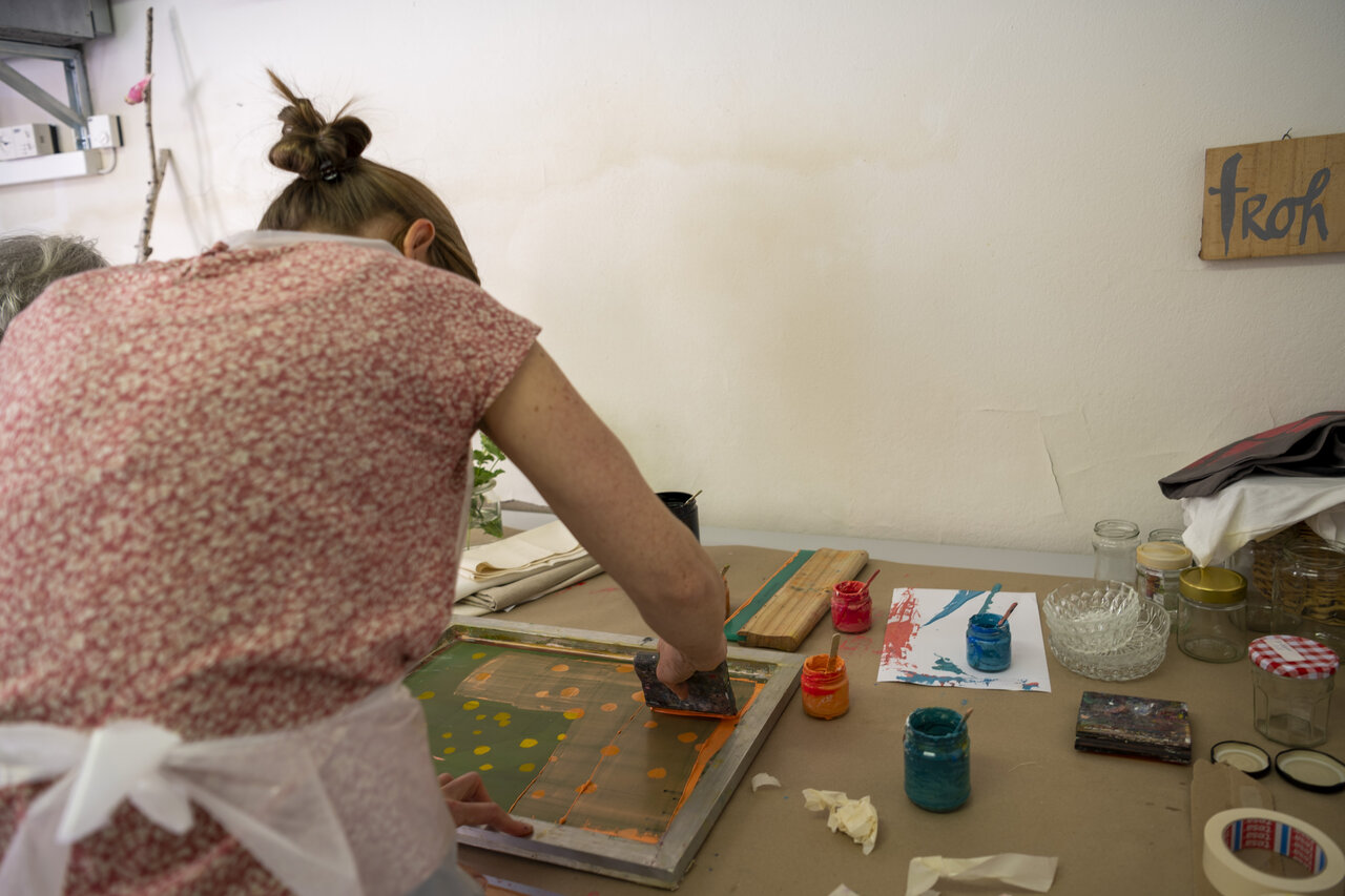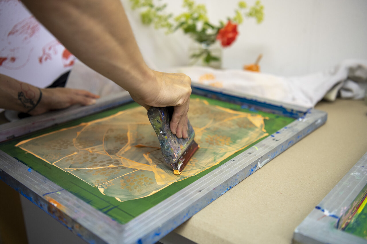 Kreation trifft Improvisation. Gönnen Sie sich eine Zeit der Kreativität und buchen Sie für Ihre Tagung unsere Siebdruckwerkstatt dazu. Kunstwerkstattleiterin Ann-Kathrin Blohmer führt Sie spielerisch ein ins Siebdrucken und lädt ein zum Experimentieren mit Farben und Motiven. Schaffensfreude pur und willkommene Abwechslung zwischen Vorträgen und Gesprächen. Weitere Infos zur Durchführung und zu den Preisen finden Sie hier: Kunstwerkstattmodule.